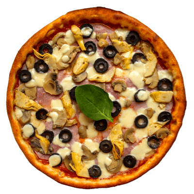 салями, ветчина, моцарелла, артишоки, грибы, оливки, оливковое масло